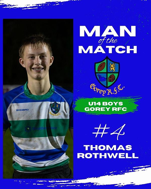 The wet night made for a slippy ball but the boys put on a great performance. From the kick-off Gorey pressure kept Enniscorthy in their own 22, after 7 mins a turnover gave Thomas the chance to show his footwork and score. 5-0.