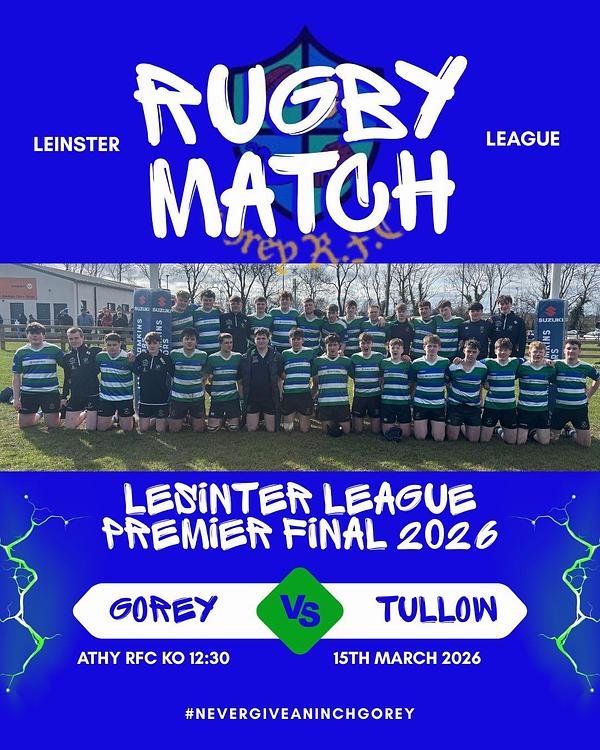 A huge day awaits for our Gorey RFC U18.5 Boys this Sunday as they take on Tullow in the Leinster Premier League Final. πππ€