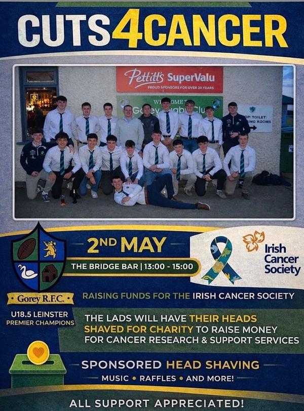 Our Gorey RFC U18.5 Leinster Premier Champions are stepping up for a brilliant cause β and theyβre going all inβ¦ the lads are getting their heads shaved! πβοΈ